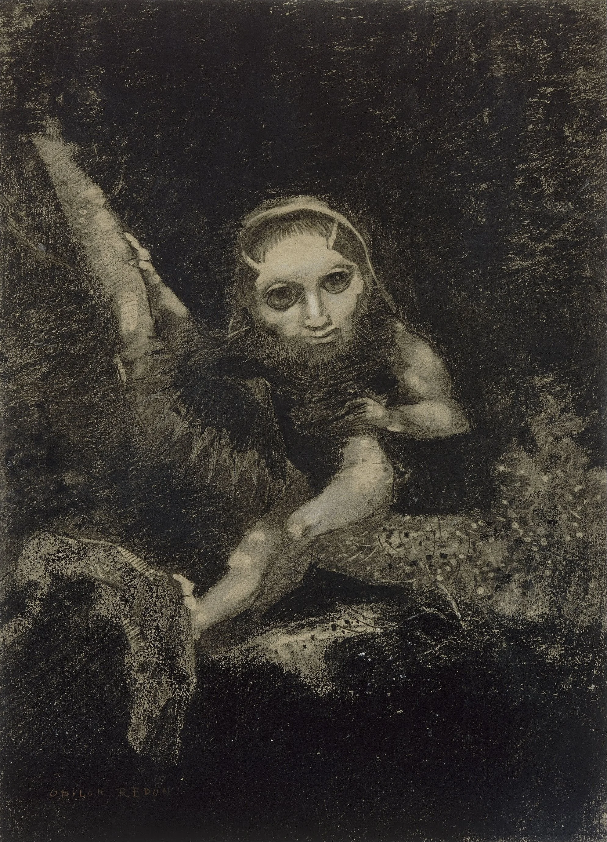 Gustav Moreau also influenced the artist Odilon Redon, another fascinating and eccentric painter whose work explores dreams and visions, often of an absurd and demented nature. In his work we see strange hovering cubes with a single eyeball floating over moonlike landscapes, eggs with eyes peering over an egg cup, and in ‘Cactus man’ he depicts a bizarre head growing out of a plant pot. Redon’s visionary work with its dreamlike quality would go on to greatly influence the Surrealists.